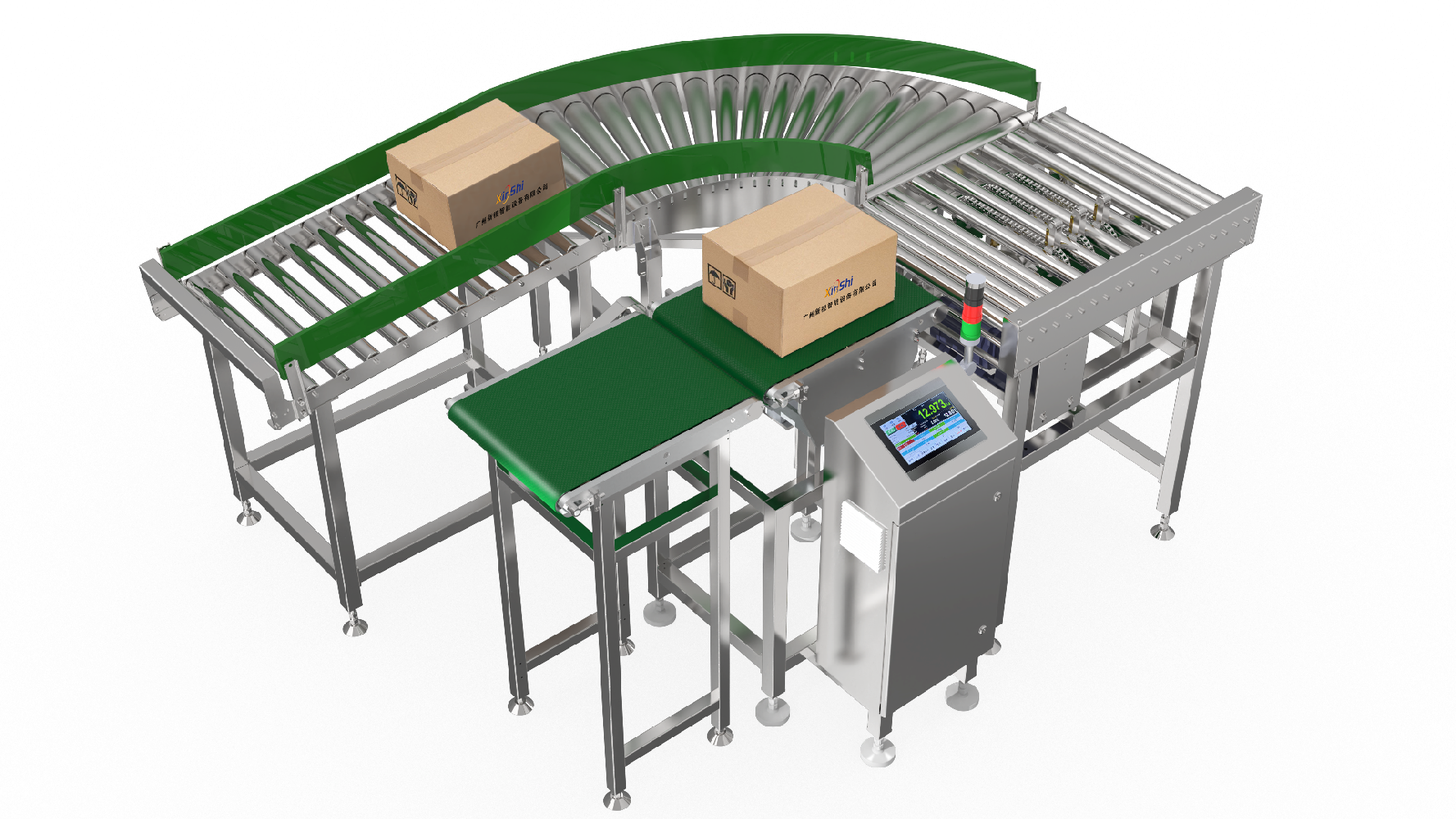 3.当连续出现超重、超轻等重量不合格时,设备给出报警信号给提示音,或反馈到自动计量设备;